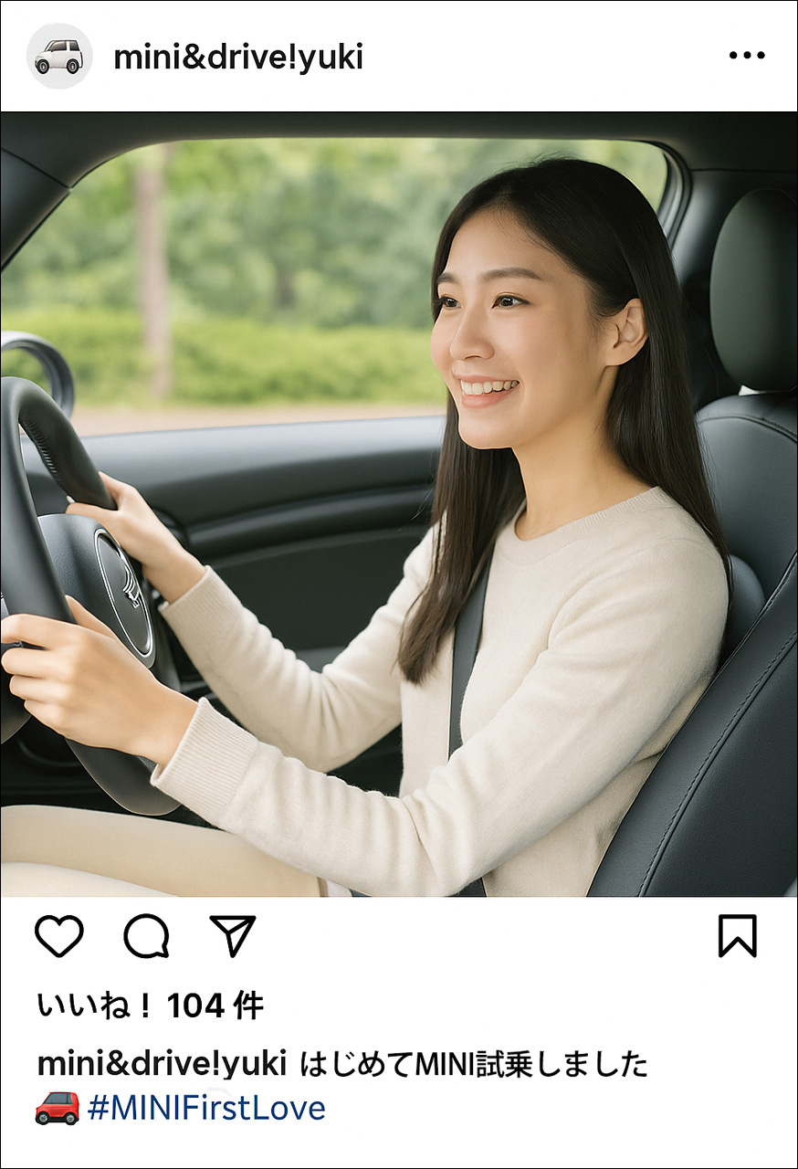指定のハッシュタグ「#MINIFirstLove」を付けて「MINIとあなたのはじめての体験」 をエピソードとともに投稿いただいた方